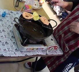 今月のイベントはおやつレク!てんぷら粉を使ってスナック菓子を作りました♪