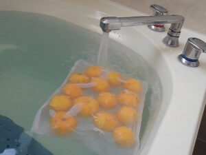 もぎたての柚子をいただいたので、えーのうでは柚子風呂でリラックスしていただきました🍊