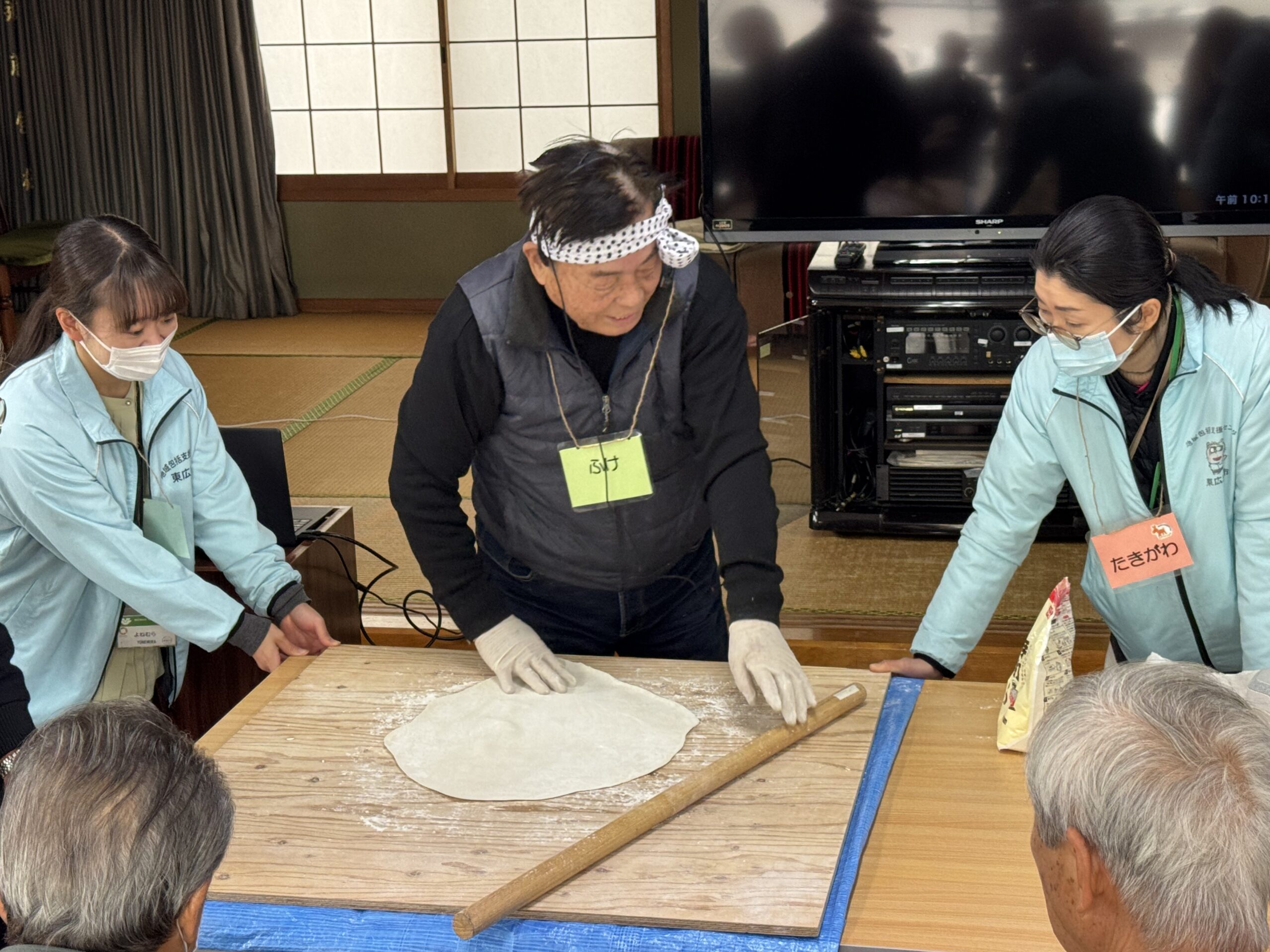 八本松包括支援センターさん主催の「ケアメンの会」にて手作りうどんの実演が開催♪えーのうスタッフも参加させていただきました!